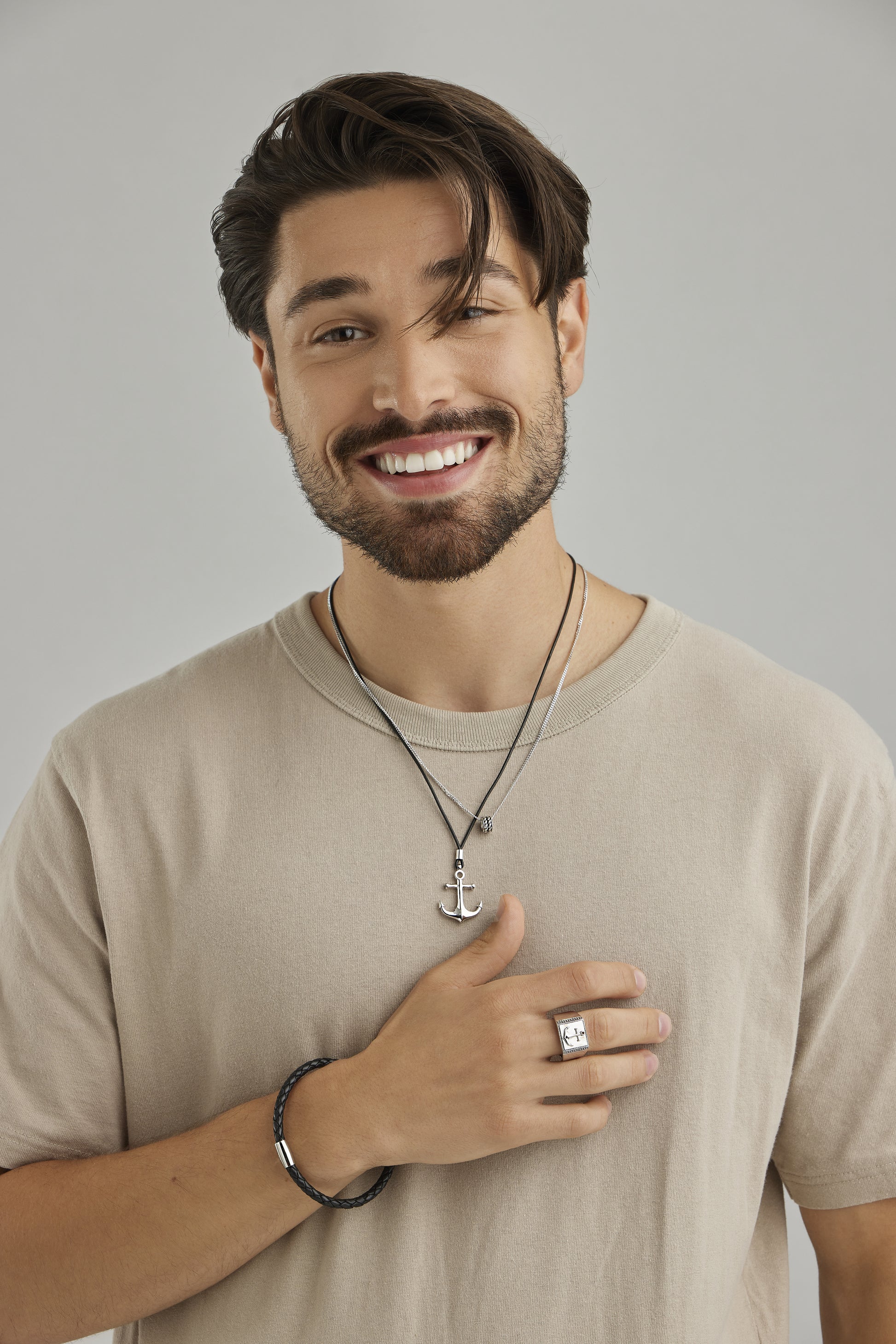 cai Anhänger mit Kette Lederband 925/- Sterling Silber rhodiniert 55cm ohne Stein