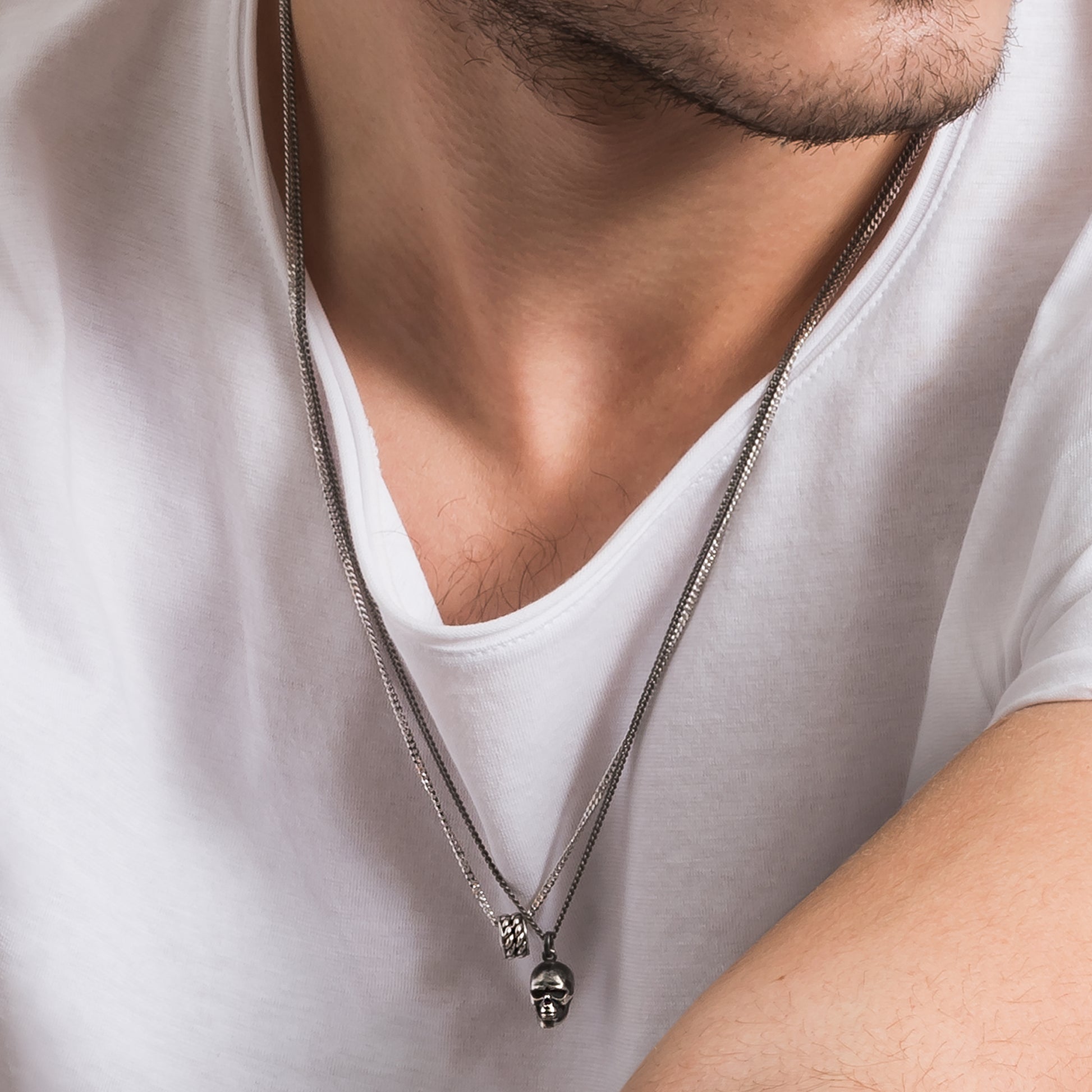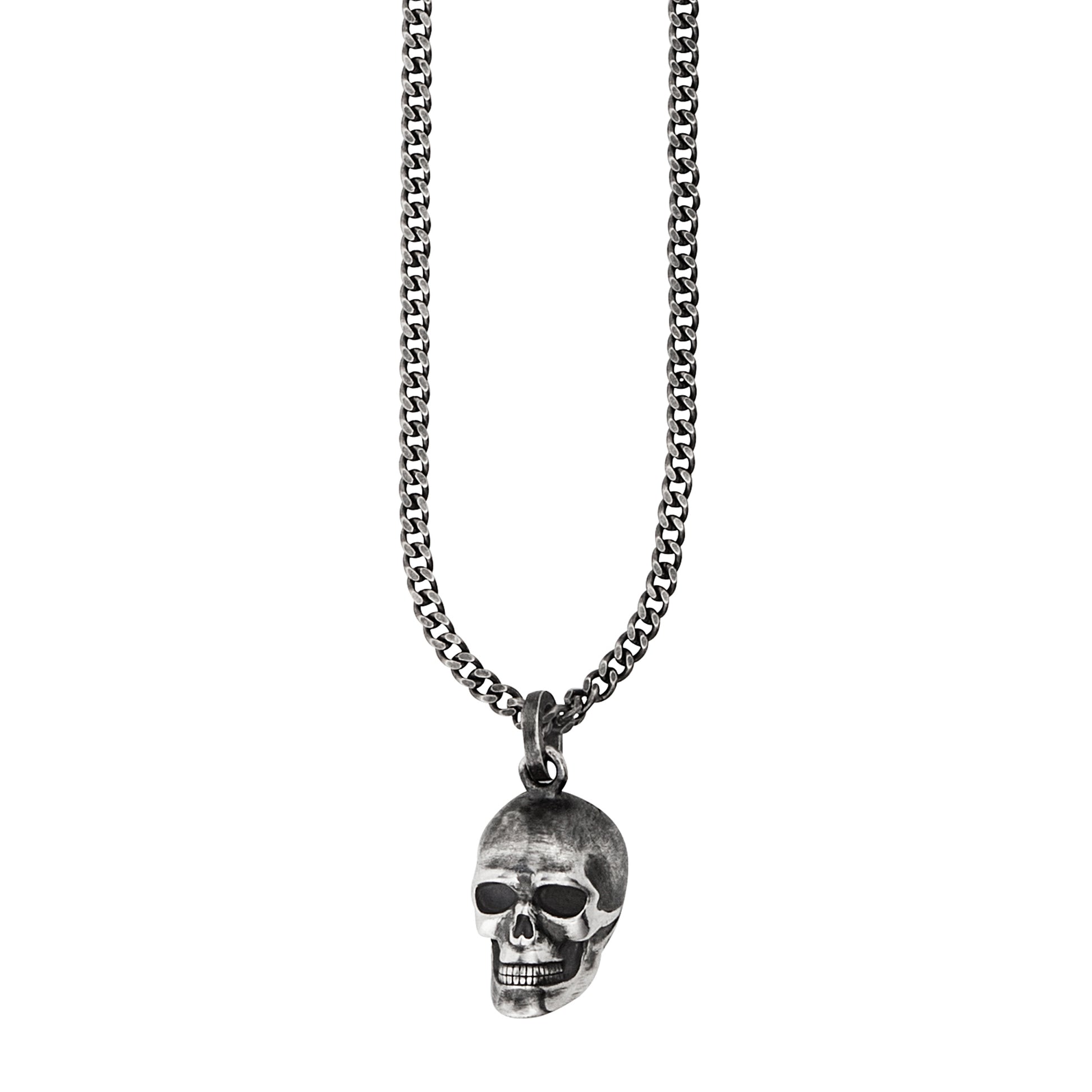 cai Anhänger mit Kette Totenkopf Panzerkette 925/- Sterling Silber oxidiert 60cm ohne Stein