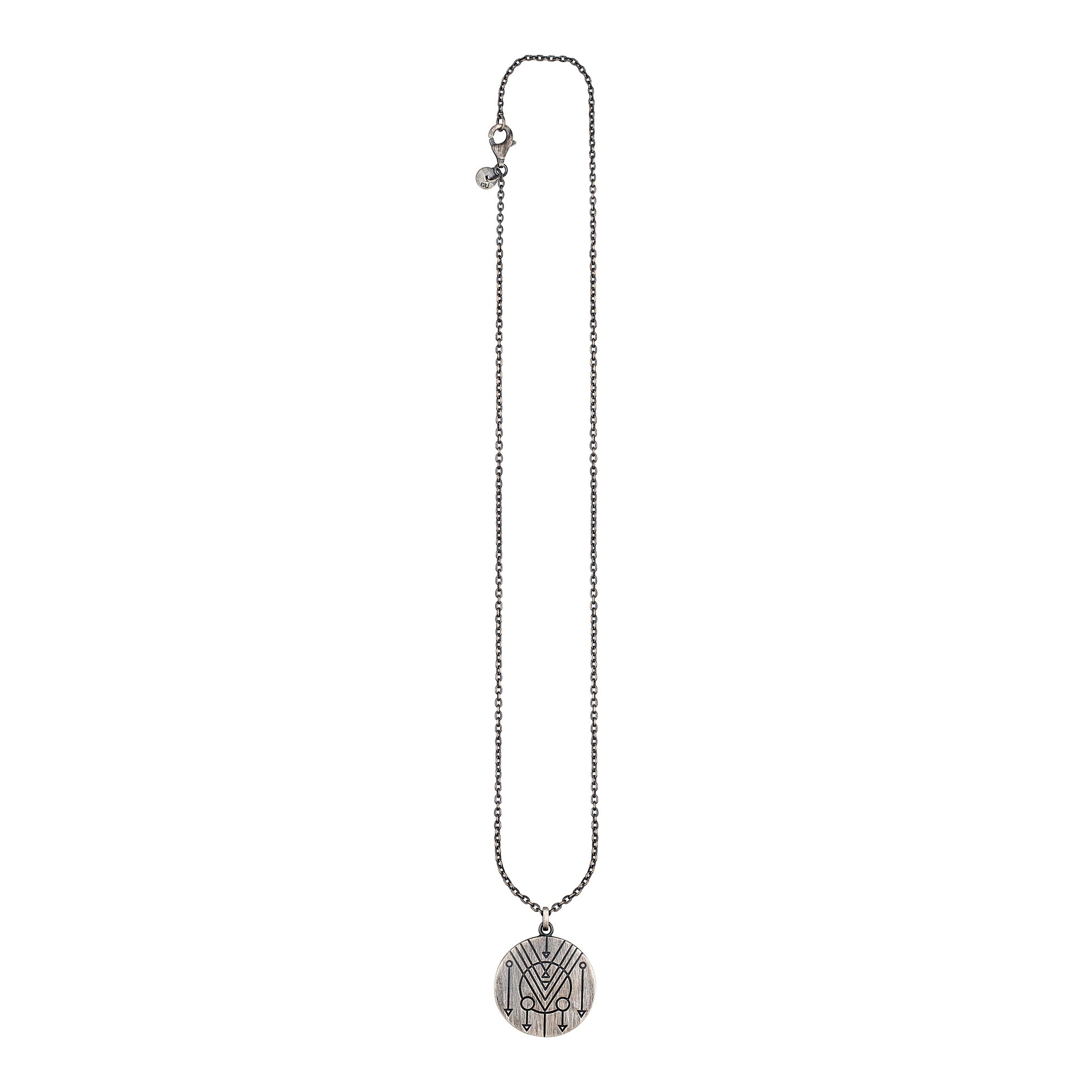 cai Anhänger mit Kette 925/- Silber matt rund oxidiert Tattoo Motiv Ankerkette 925/- Sterling Silber oxidiert 60cm ohne