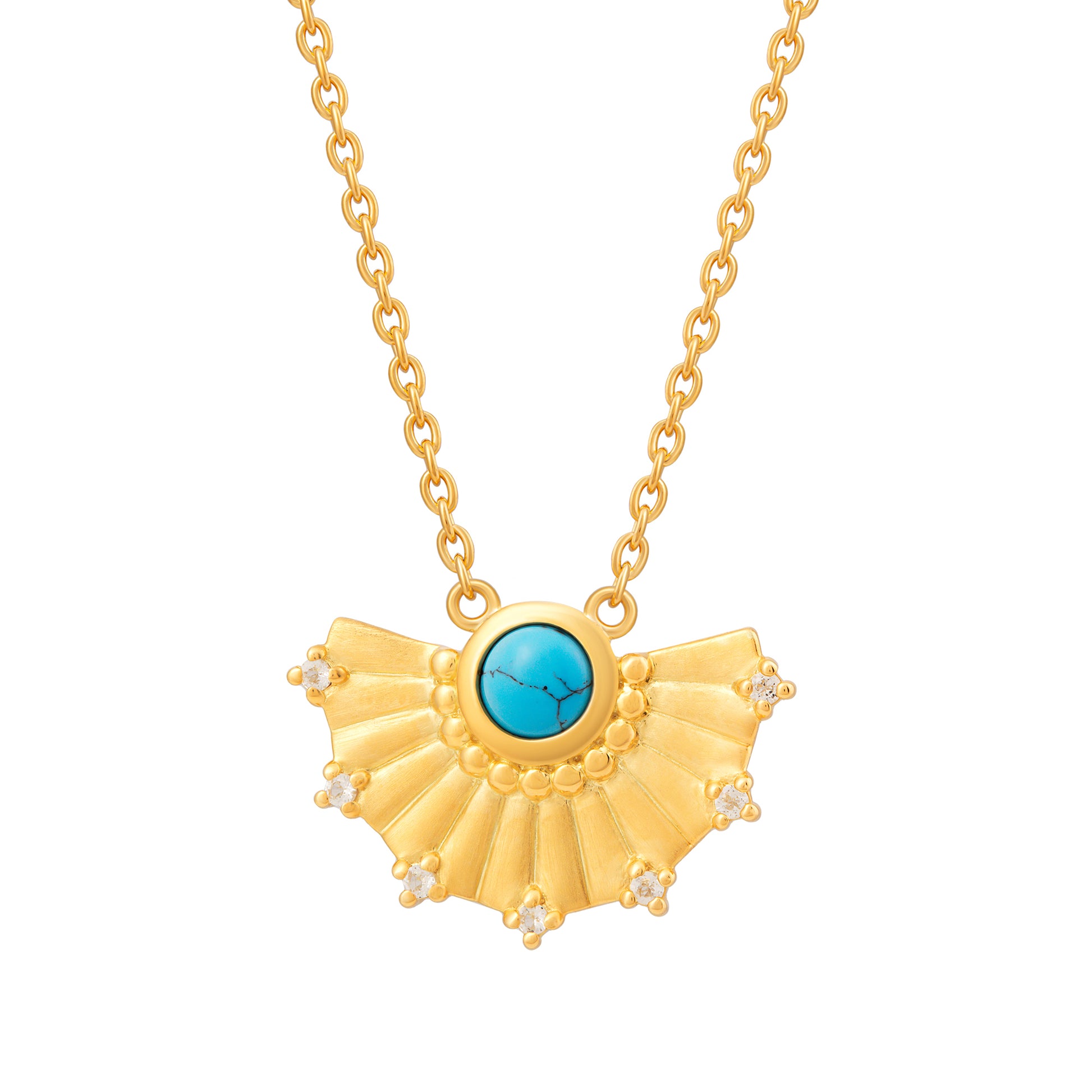 cai Collier 925 Silber vergoldet Fächer Anhänger mit Türkis & Weißtopas Ankerkette 925/- Sterling Silber vergoldet 45,0cm Türkis