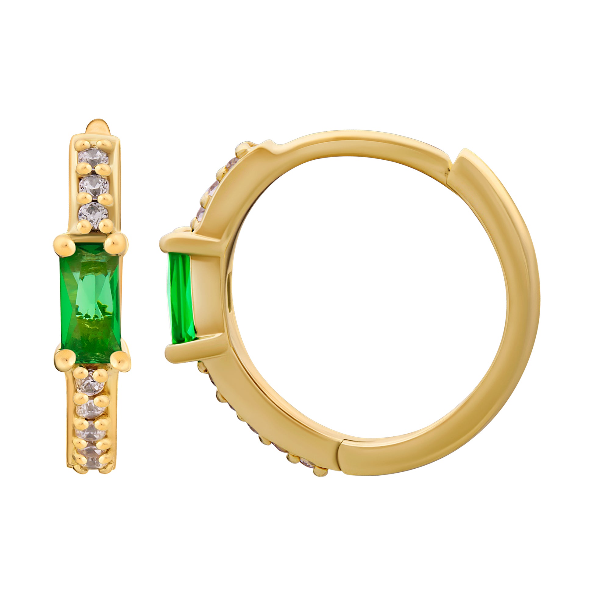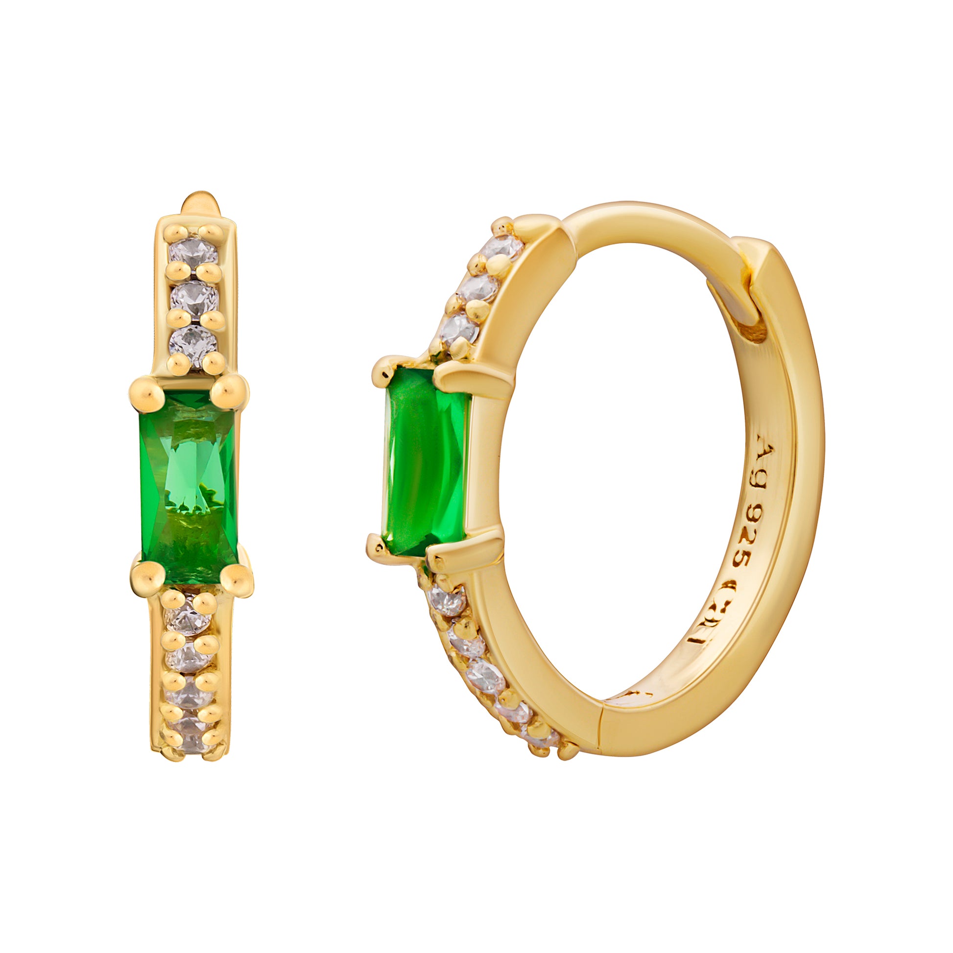 cai Creole 925 Sterling Silber gelb vergoldet Baguette Stein grün Zirkonia 925/- Sterling Silber vergoldet 1,3cm Zirkonia