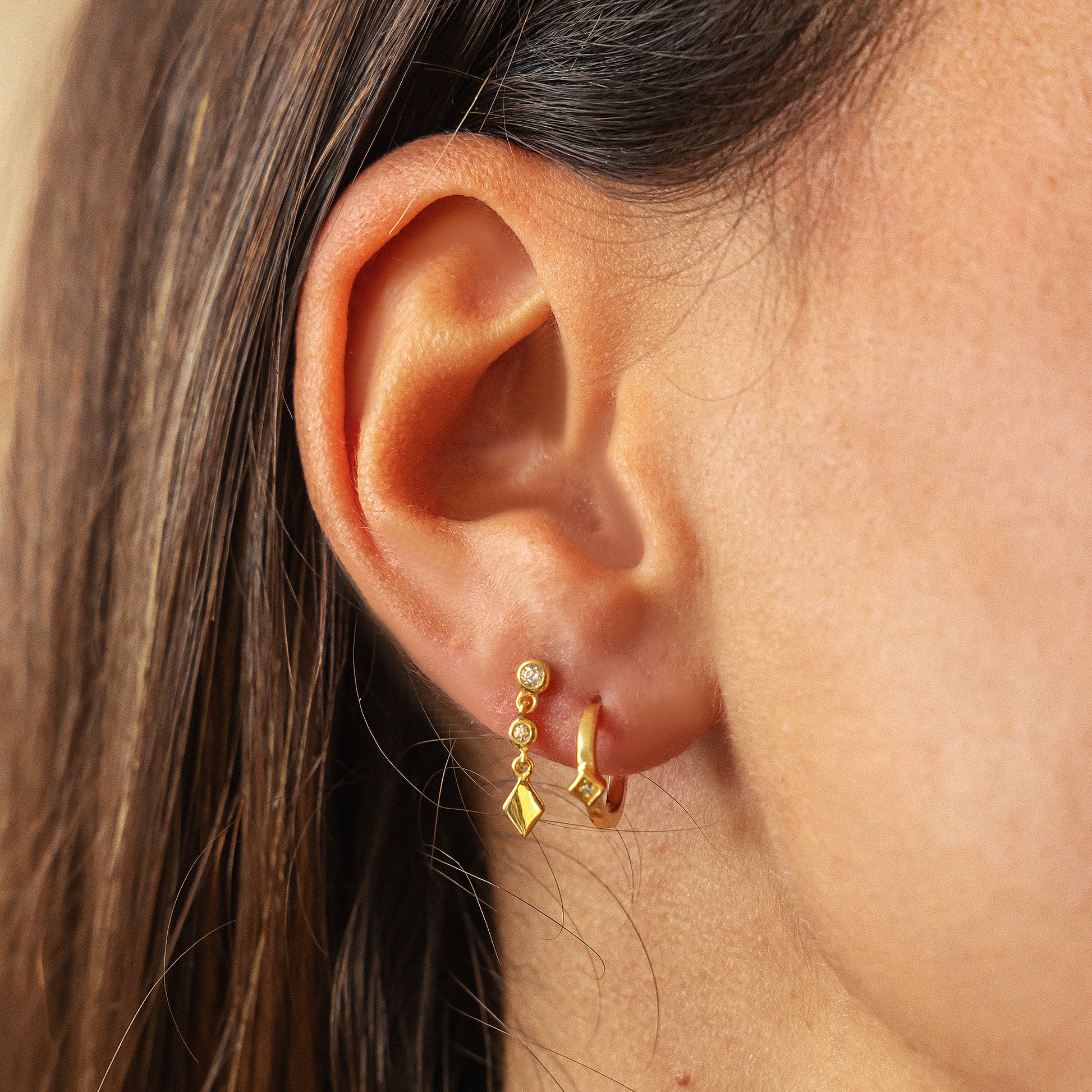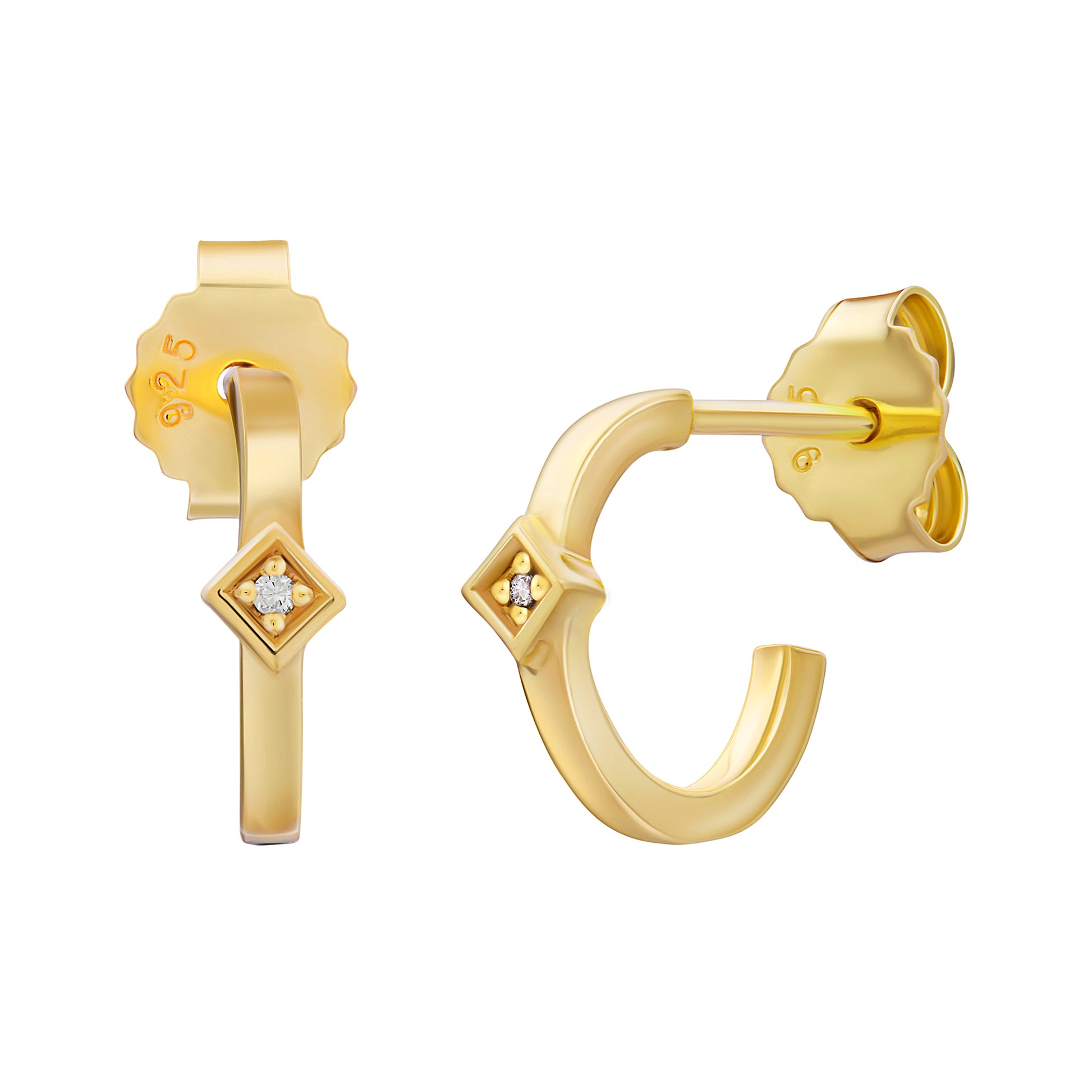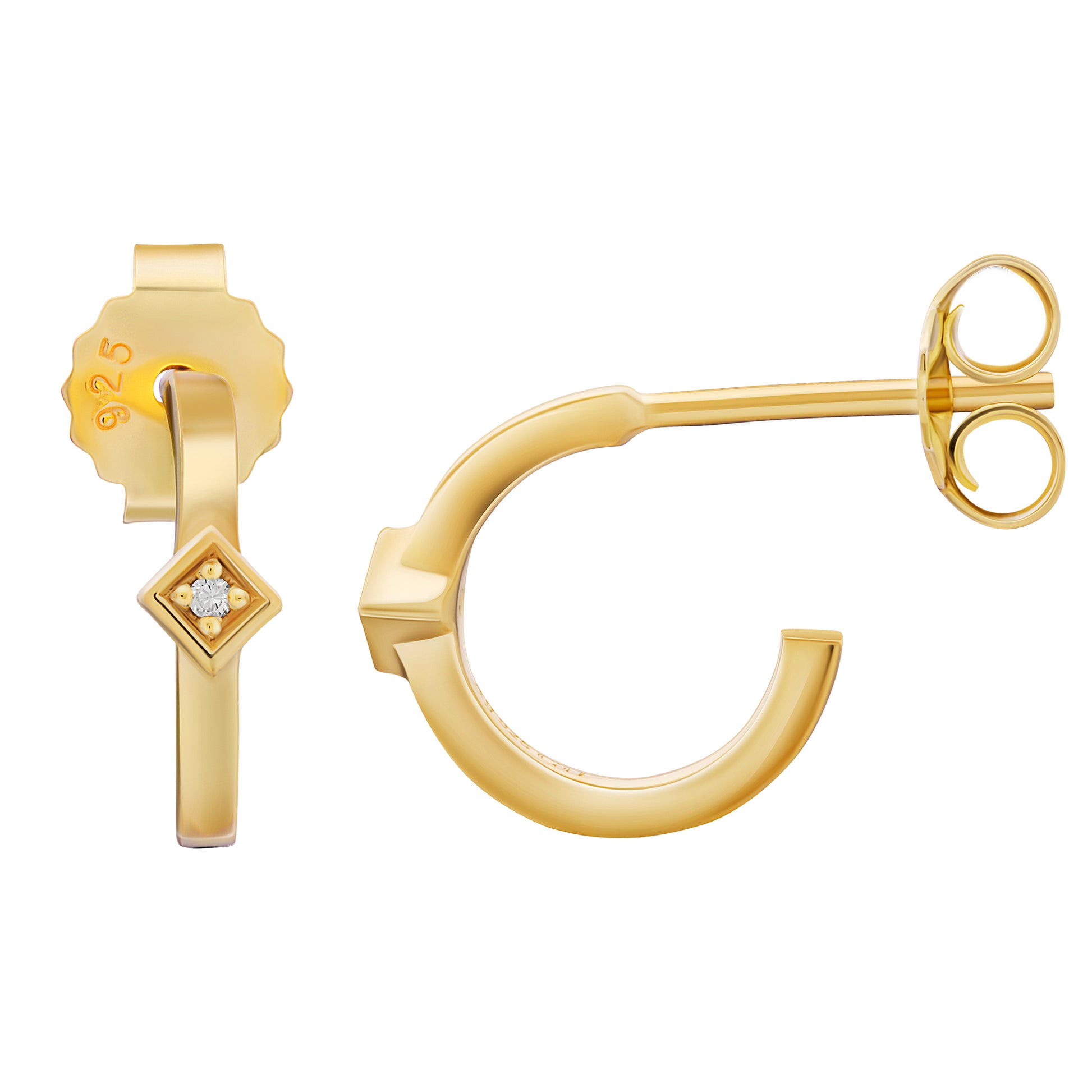 cai Creole 925 Sterling Silber vergoldet Raute Zirkonia 925/- Sterling Silber vergoldet 1,0cm Zirkonia