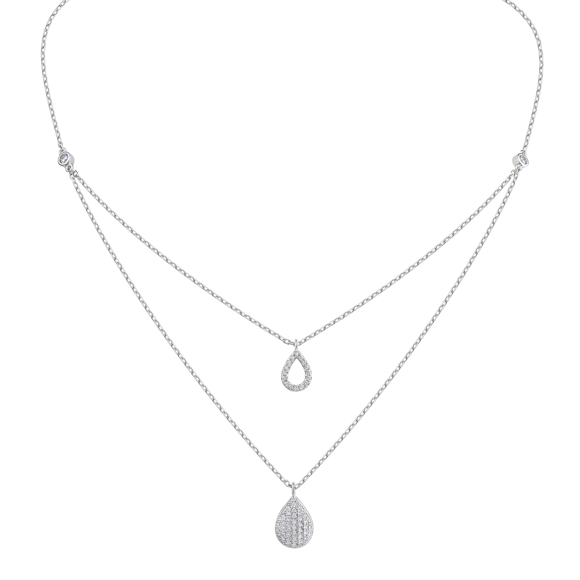 Collier 925 Silber rhodiniert Zirkonia Ankerkette 925/- Sterling Silber rhodiniert 45cm