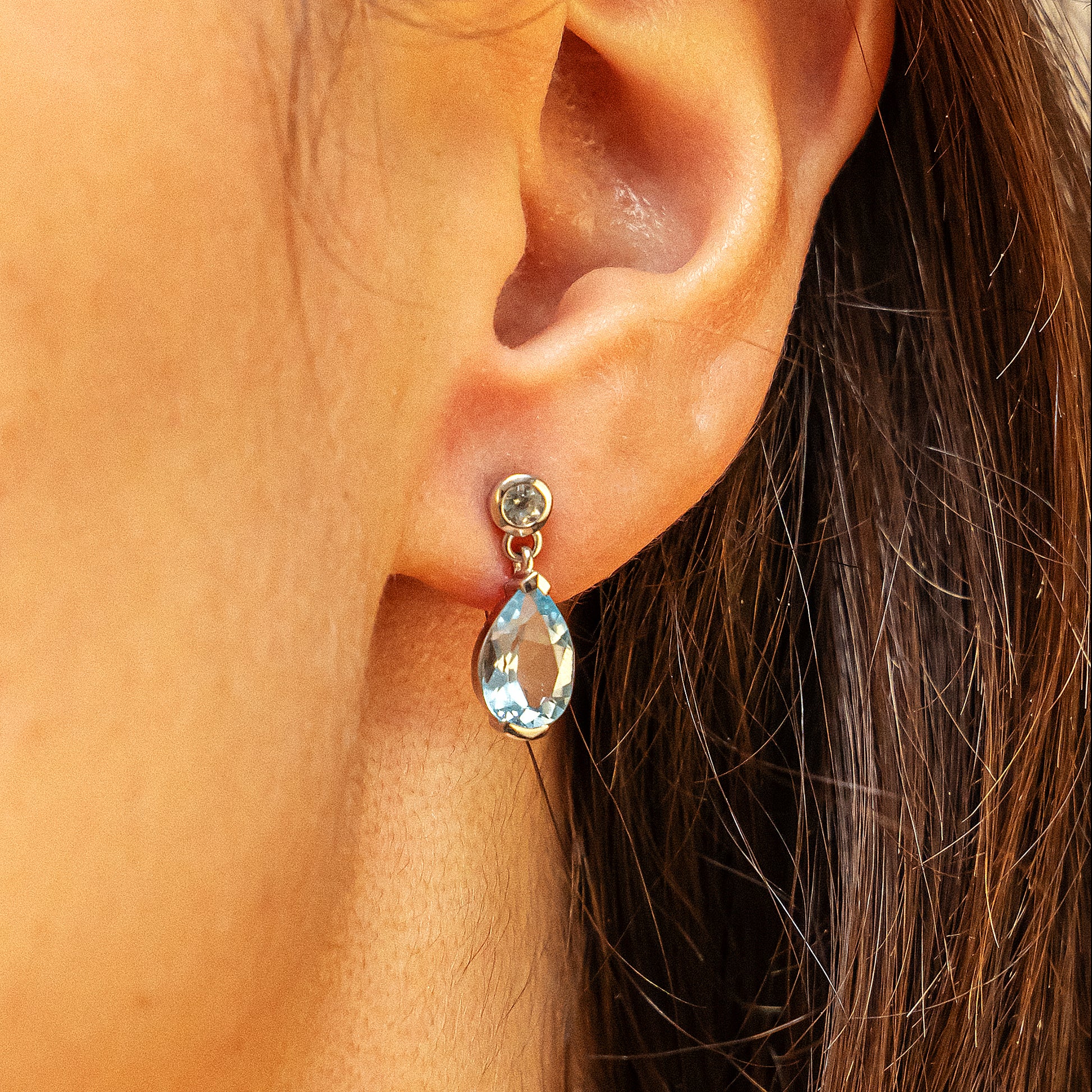 Ohrringe 585/- Gold rhodiniert 1,9cm Blautopas beh.