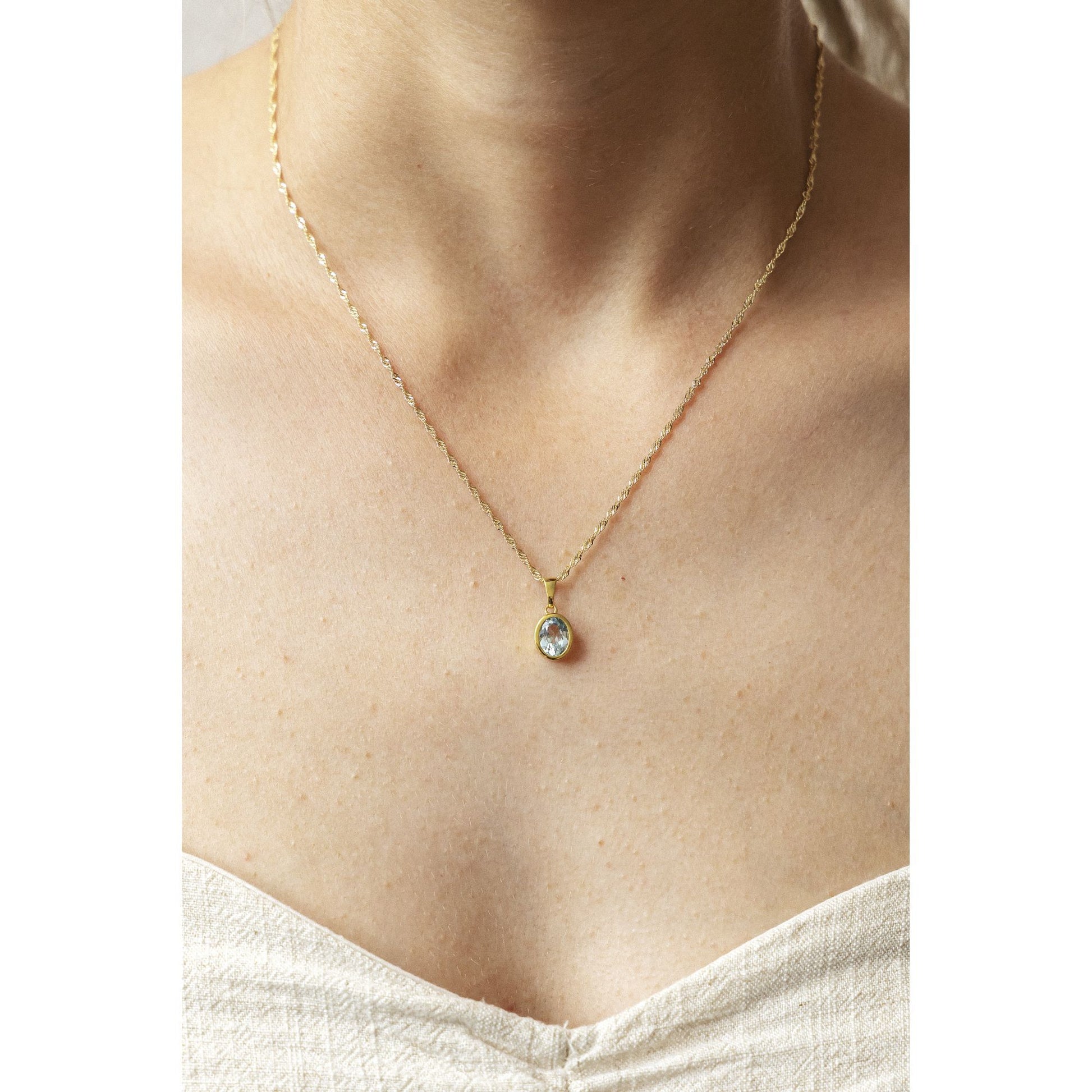Halskette Singapurkette 375/- Gold 43cm Blautopas beh.