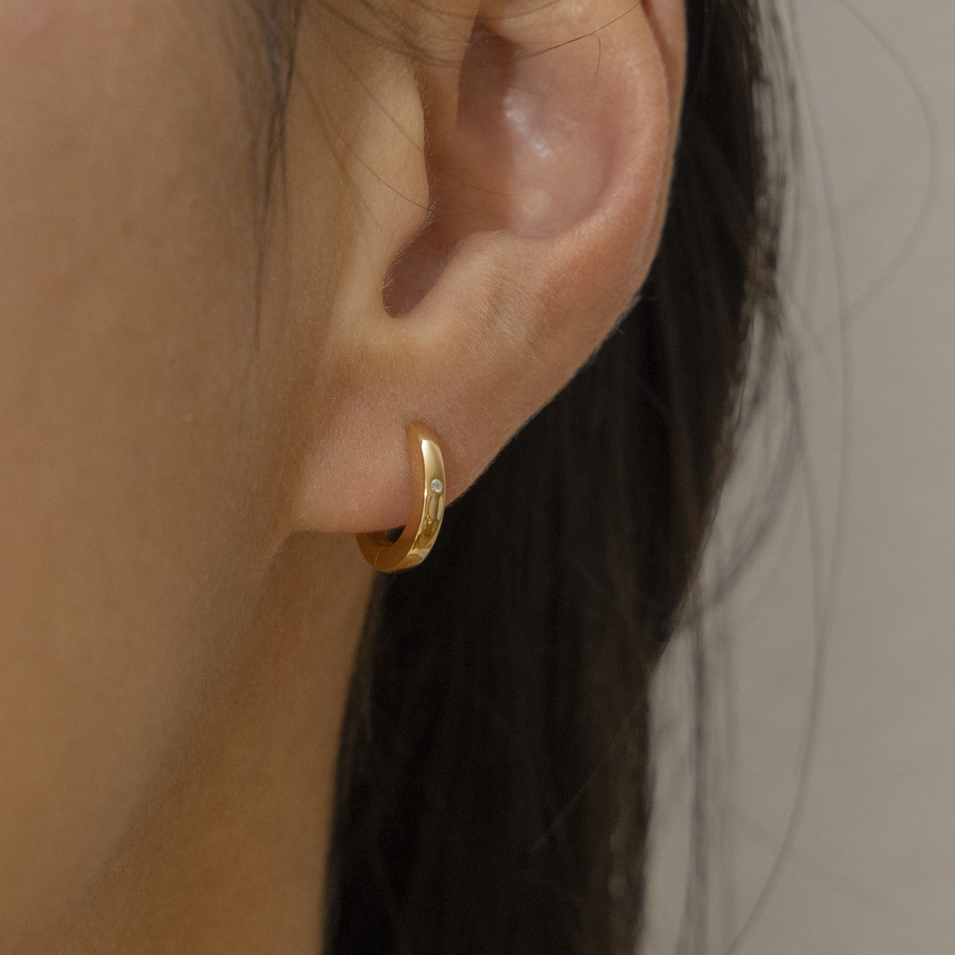 cai Klappcreolen 925/- Sterling Silber vergoldet 1,1cm Zirkonia
