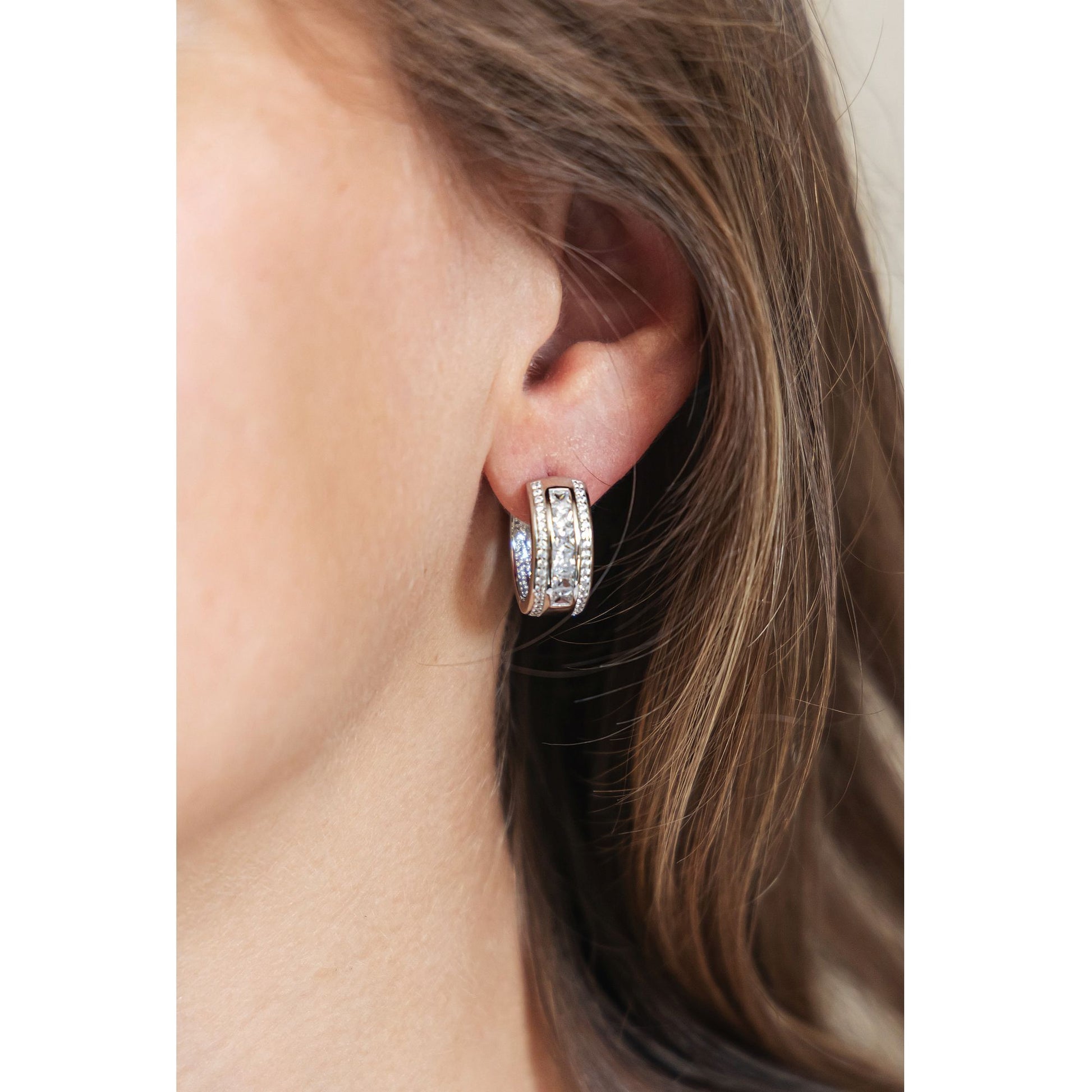 Ohrring 925/- Sterling Silber rhodiniert 1,9cm Zirkonia 0,195