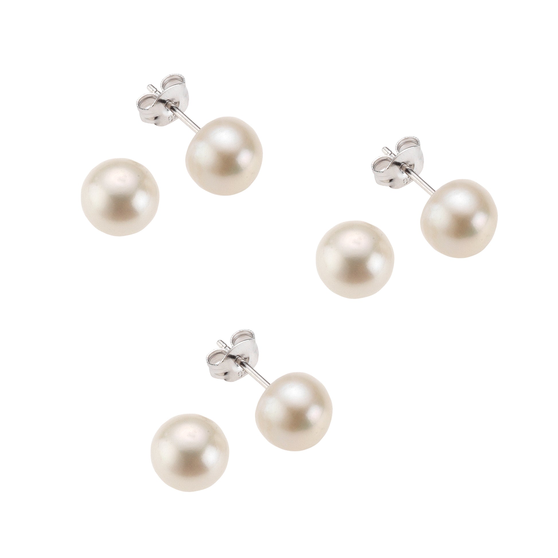 Ohrstecker 3er-Set 925/- Sterling Silber rhodiniert 1,2cm Süßwasserzuchtperle