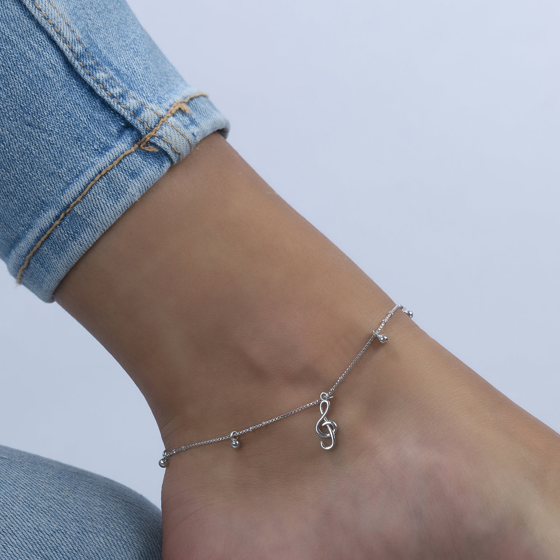Fußkette Venezianerkette 925/- Sterling Silber rhodiniert 25,0cm ohne