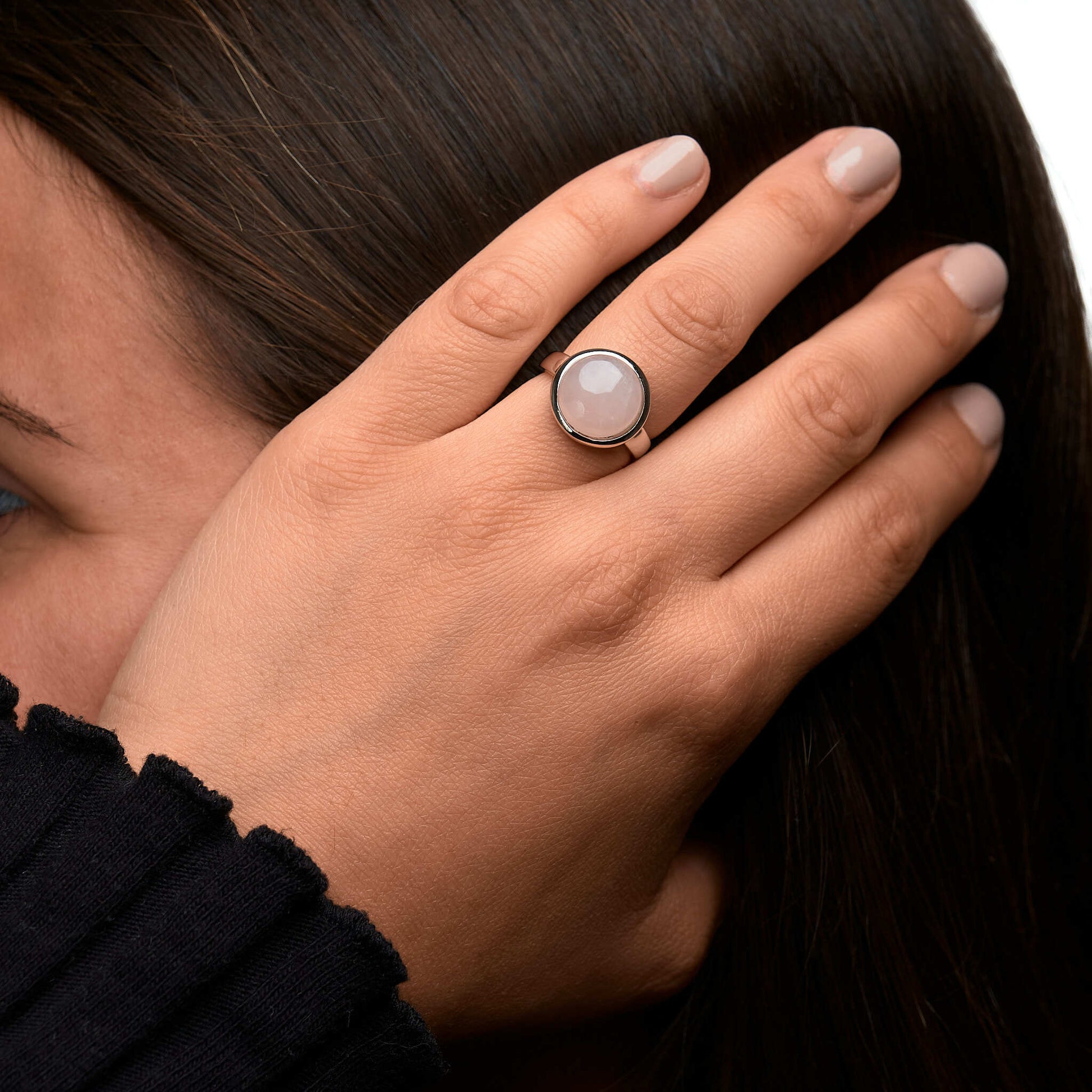 Ring 925/- Sterling Silber rhodiniert Rosenquarz