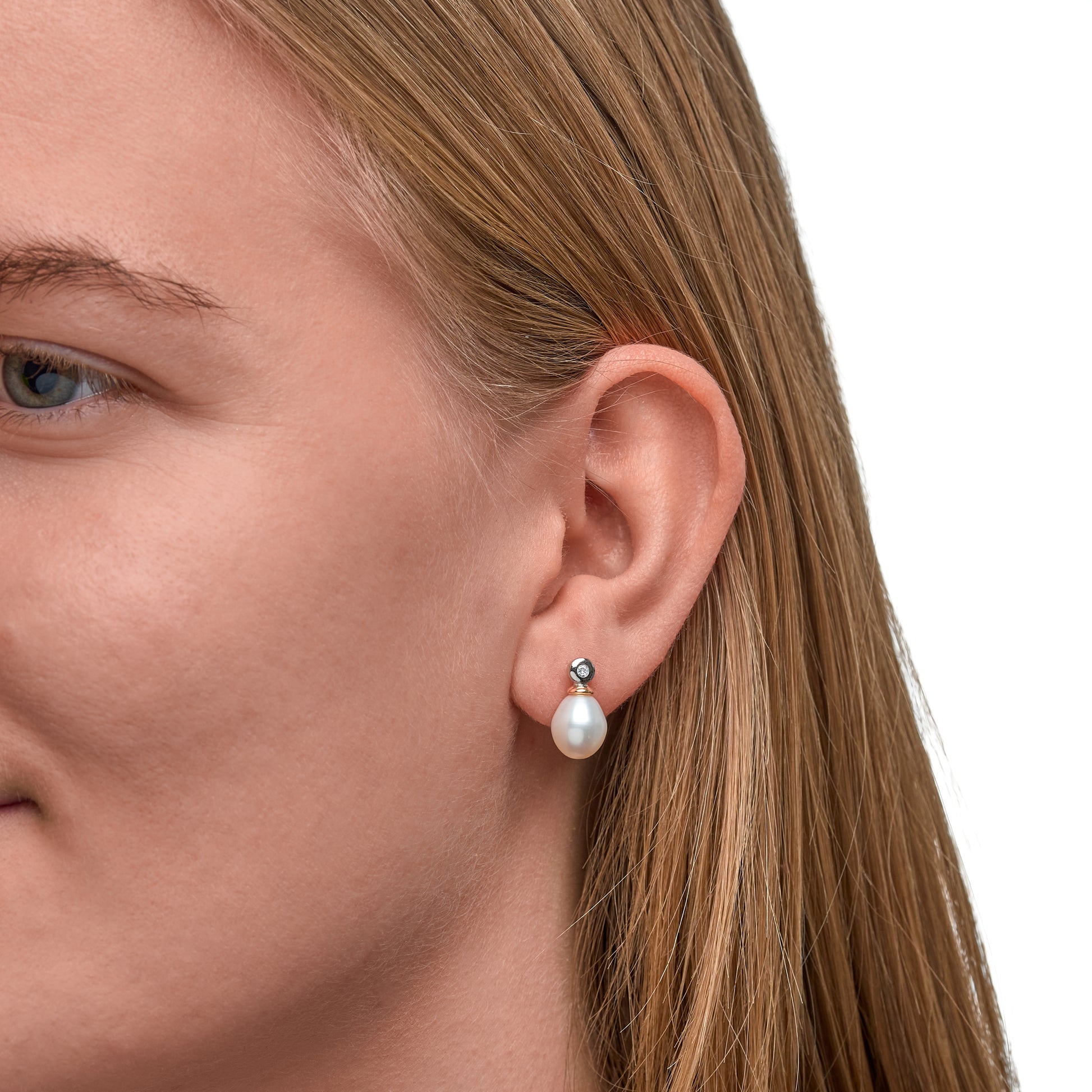 Ohrringe 925/- Sterling Silber vergoldet (teil) 1,5cm Süßwasserzuchtperle