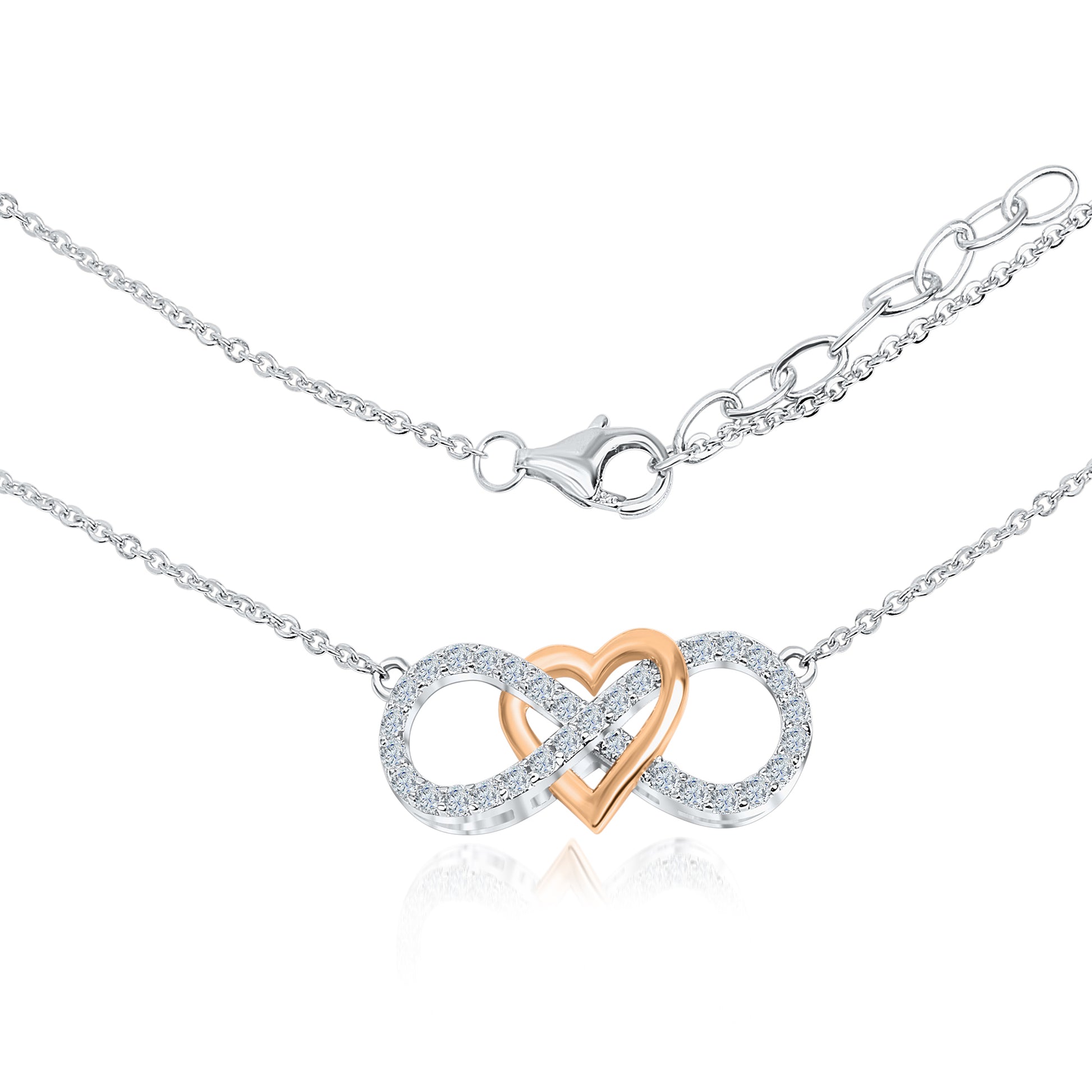 Collier Ankerkette 925/- Sterling Silber rotvergoldet (teil) 45,0cm Zirkonia