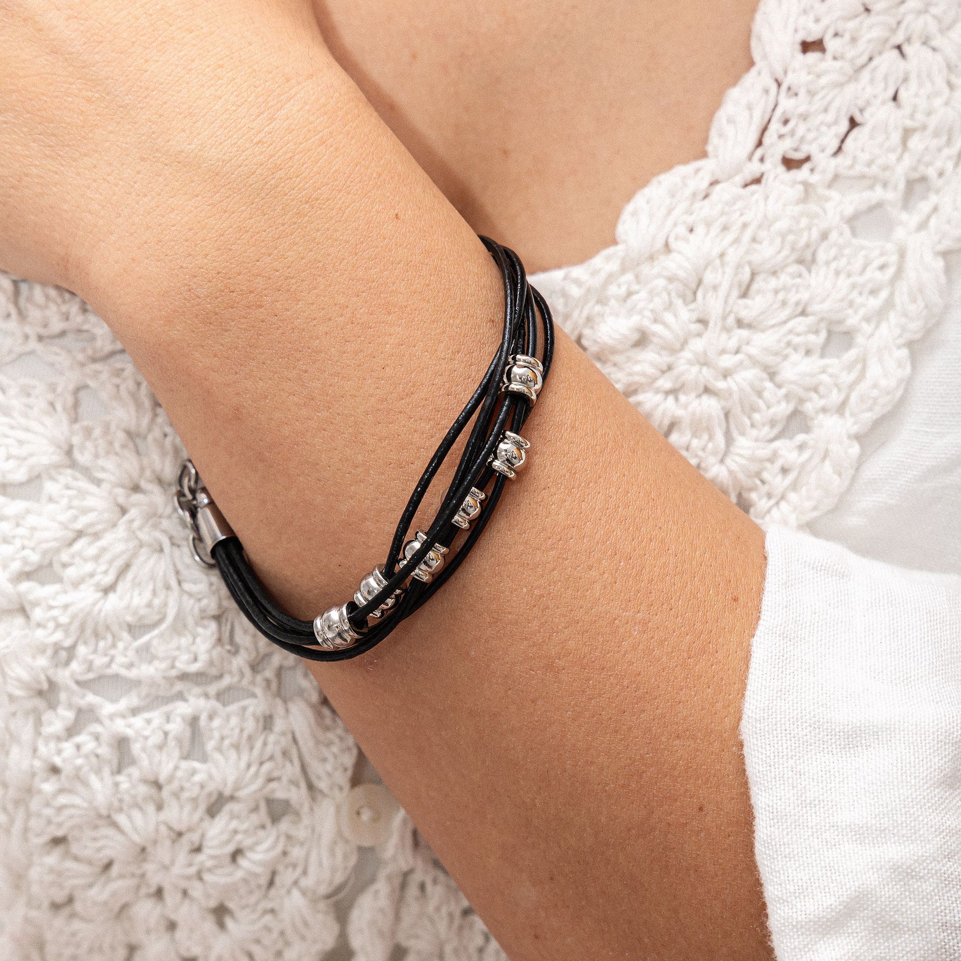 Armband Lederband Edelstahl 21cm